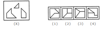 4. Find out which of the figures (1), (2), (3) and (4) can be formed from the pieces given in figure (X).